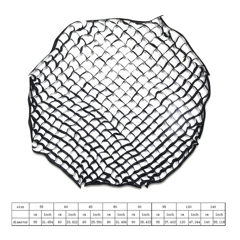 Grids with a diameter of 85cm-140cm should be used in conjunction with the appropriate size of the soft light box (nylon buckle is required on the soft light box).