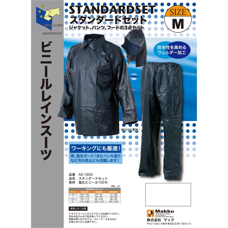 Mac AS-1800 Raincoat Standard Set, Navy, M