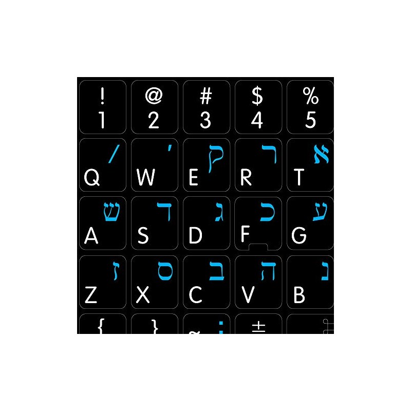 MAC ENGLISH-HEBREW KEYBOARD LABELS LAYOUT ON BLACK BACKGROUND FOR DESKTOP, LAPTOP AND NOTEBOOK