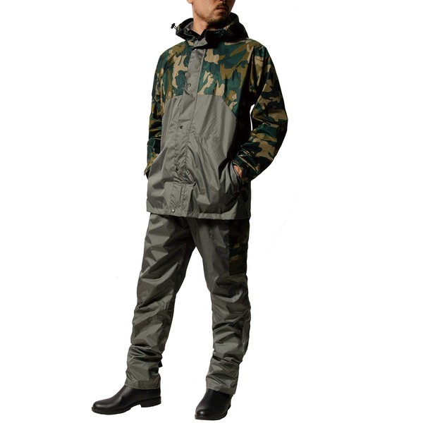 Mac Raincoat (Water Resistance: 5.9 inches (15,000 mm) H2O) (Permeability: 10,000 g/m2) (Reflective Printing) (Hem Adjustable Tape Function) (Hood Roll-Up) (Large Storage Pocket), Green Camouflage, M