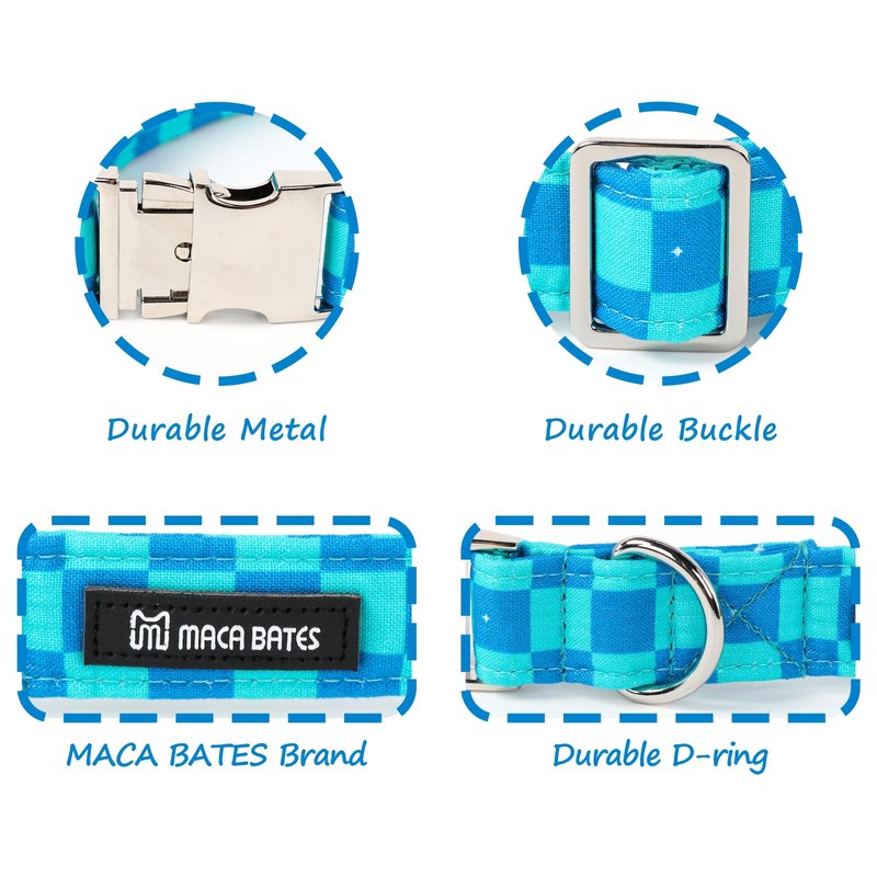 Maca Bates Checkered Mint Blue Dog Grid Collar for Small Dogs Adjustable Plaid Collars Accessories Gift for Small Medium Large XL Puppy with Golden Metal Buckle