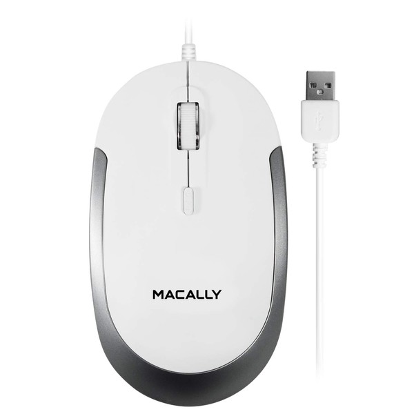 Macally DYNAMOUSE-W USB Optical Silent Click Mouse With 2 Buttons, Scrollwheel and DPI Button for Mac and PC, white White & Silver