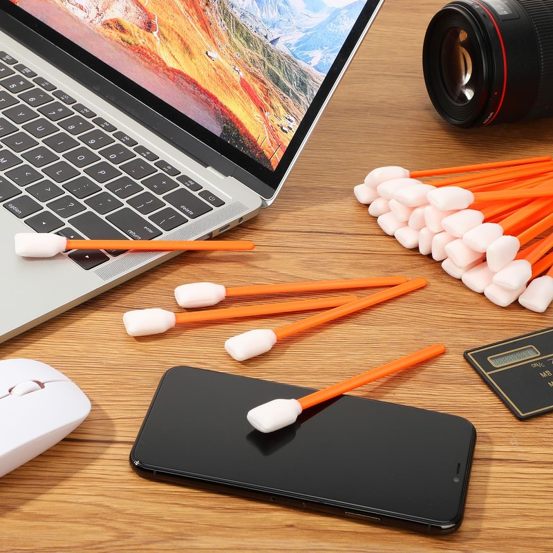 - Quality Material: the cleaning swab head is made from the quality open-cell foam. The foam part is connected to the plastic stick well without breaking apart or leaving any lint. The plastic shafts also bend well and remain sturdy