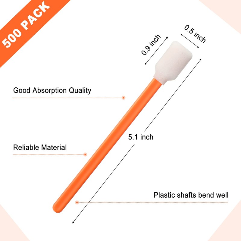 Macarrie 500 Pack Cleaning Swabs 5.1 Inch, Foam Tips Sponge Sticks for Printer, Electronics, Camera, Optical Lens, Sewing Machine(Orange)