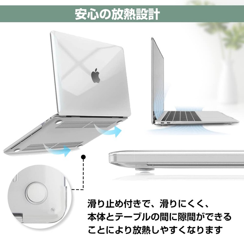 - ◆Heat dissipation design: The cover on the bottom has an exhaust port, so it is breathable and dissipates heat. Furthermore, the rubber feet design on the four corners of the bottom creates a gap between the table and allows for better heat flow. In addition, the rubber feet create friction with the table, preventing the body from sliding around. Ultra thin, lightweight, easy to put on and off, and the top and bottom covers can be used alone. Fits perfectly to the aircraft, easy to install and remove. It does not interfere with your MacBook no matter how many times you open and close it, and it is thin, light and easy to carry and won't be burden