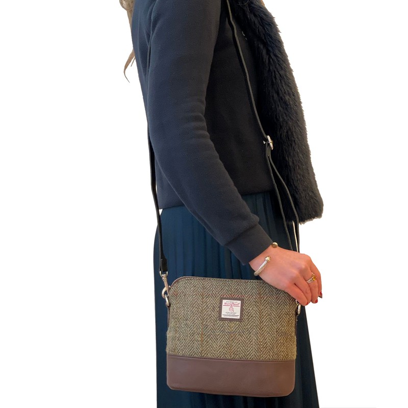 Our Harris Tweed square shoulder bag is a twist on the classic cross body saddle bag .