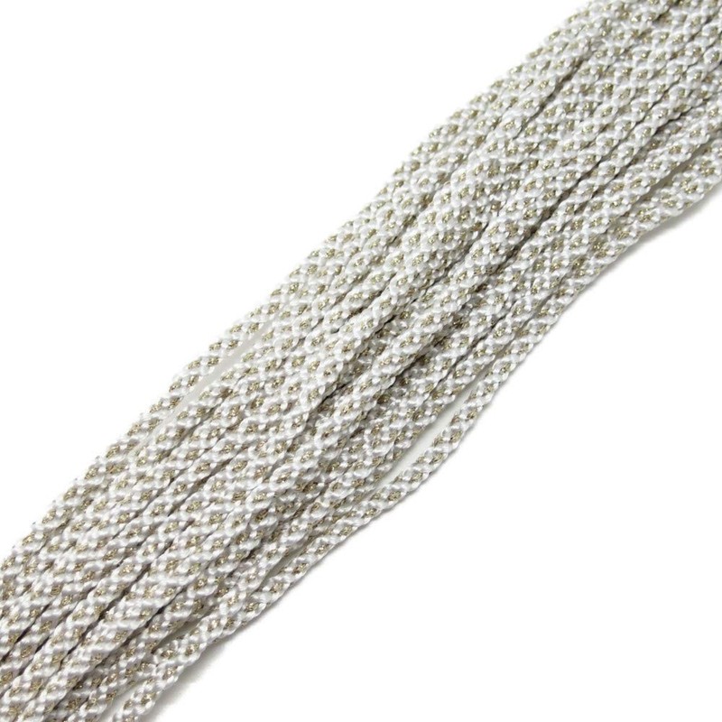 [Machida Suten] Rayon Lurex Edo Hitting String (Genji Rope) Eight Braid String / Decorative String / Apron / Handicraft / Japanese String (White x Gold)