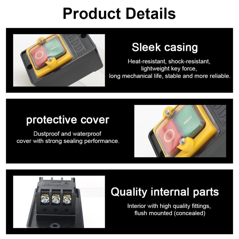 - Self-locking ON and automatic reset OFF: with a self-locking start button and an automatic reset stop button, this on/off push button switch main switch ensures reliable operation in textile machinery and heavy machinery applications.