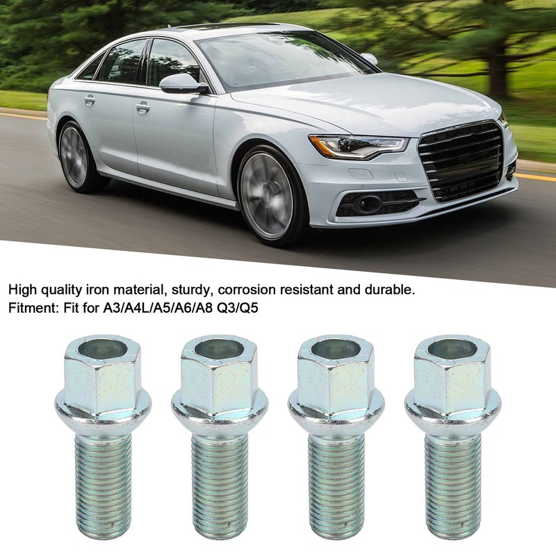 Machine Screws 4pcs Wheel Hub Screws Iron Wheel Lug Bolt Screws M14x1.5 Thread Accessories Compatible with A3/A4l/A5/A6/A8 Q3/Q5