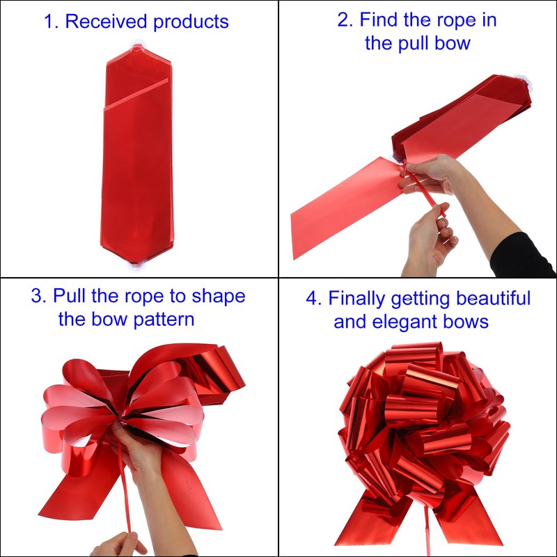 - -Usage:The big bows these pull bows can be applied to Christmas gifts, weddings, parties, birthday parties, wrapping boxes, wedding supplies, flower making, home decoration, party decoration, making your life full of romance, warmth and pleasure.