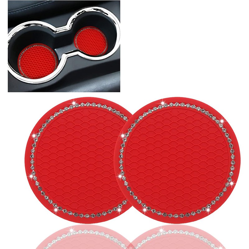 MACHSWON 2PCS PVC Car Coaster Bling Car Cup Coaster Non-Slip Cup Holders 2.76inch Embedded in Ornaments Crystal Surface Coaster Car Accessories Red