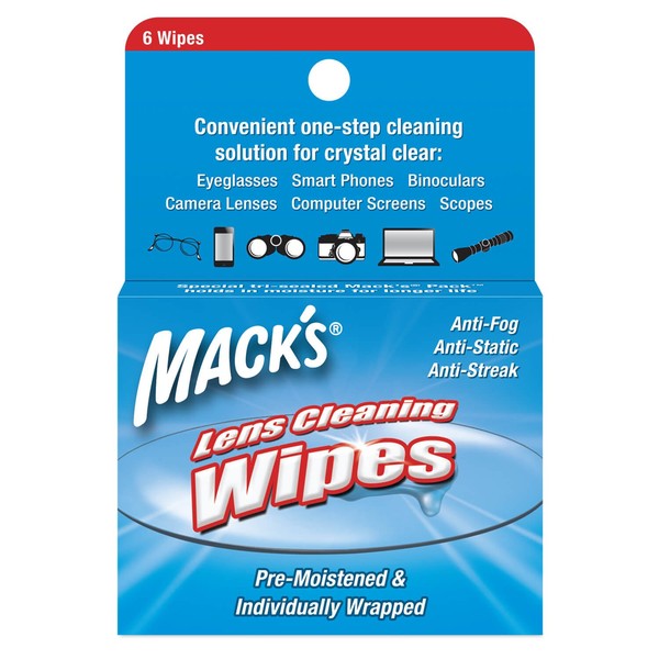 Mack's Lens Wipes - Lens Cleaning Towelettes - 6 Per Pack