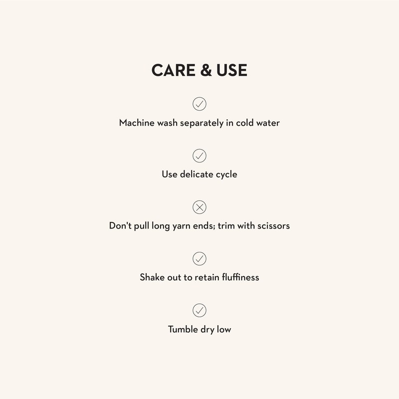 Care instructions: Machine wash cold on a gentle cycle. Tumble dry low. Shake out to retain fluffiness. Don’t pull long yarn ends; trim with scissors. Use only non-chlorine bleach when needed. Pieces may vary due to the handmade nature of each product. Imported.