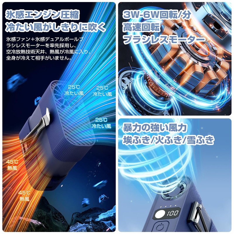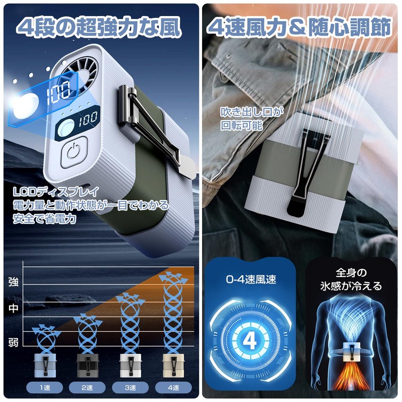 - (New Dimensional Cooldown) Equipped with the industry's first "Icy 8th Generation" fan and "Ice Double Ball Bearing and Brushless Motor". Reduce your body temperature by 25 degrees Celsius in just 1 second and chill your whole body like ice. 130° wide angle blower cools evenly from the waist to the head and leaves no sweat droplets