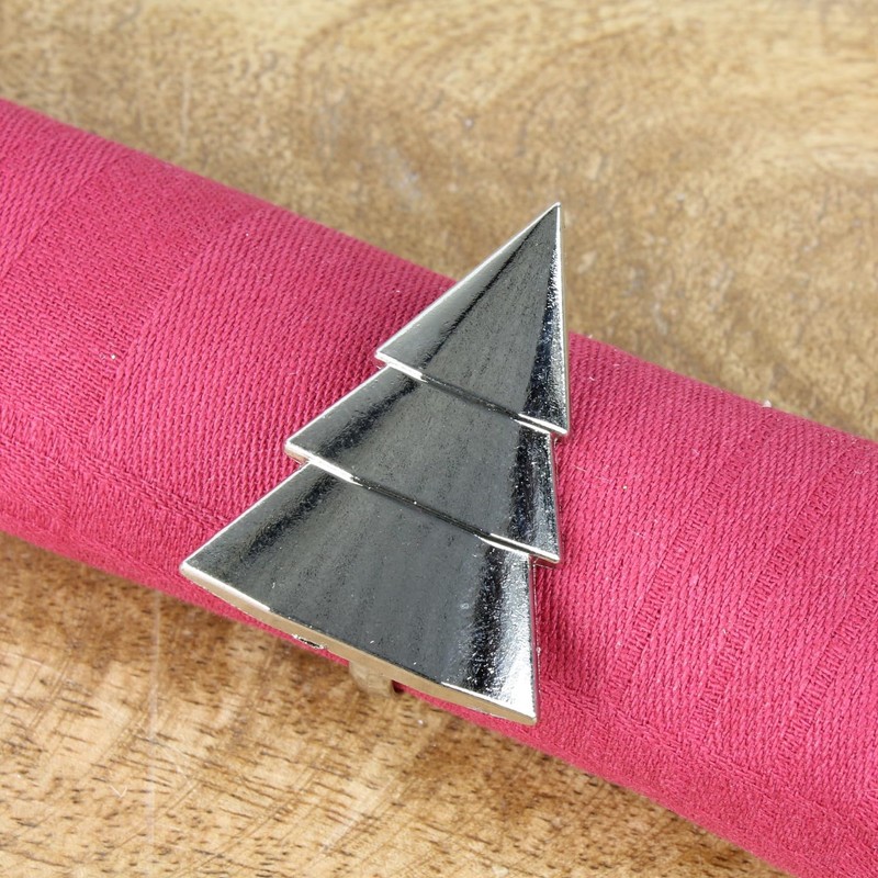 Macosa CO48092 Napkin Rings Fir Tree Set of 4 Metal Silver Christmas Festive Table Decoration Napkin Holder Table Decoration Accessory