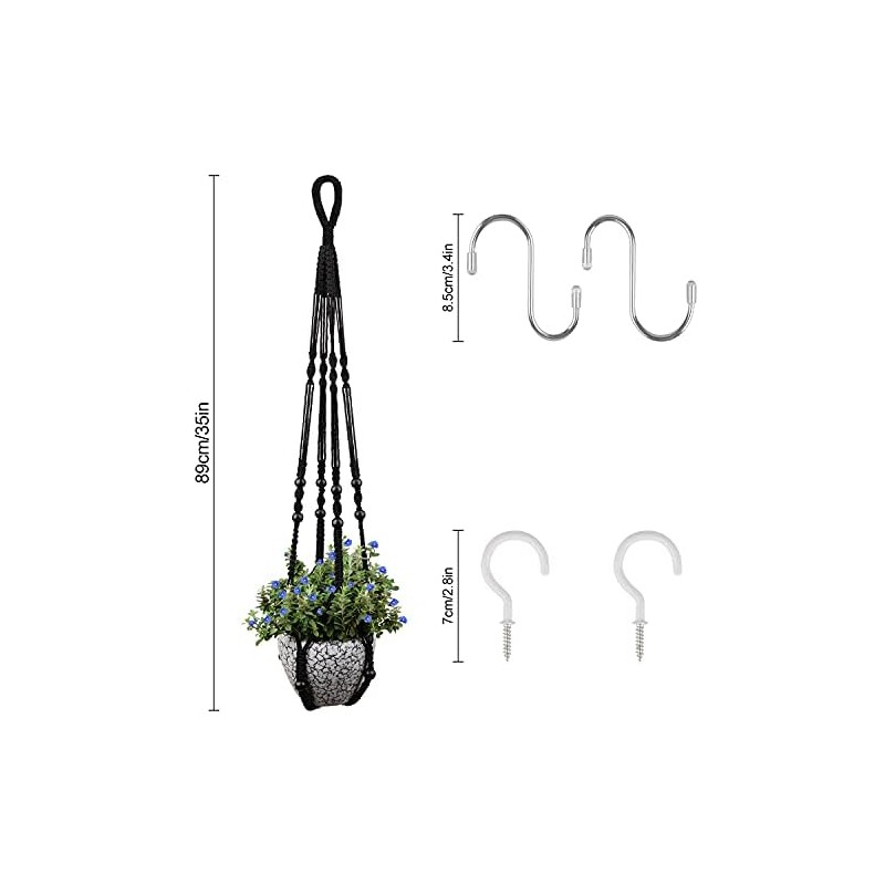 - One Size Fits Most & Natural Color - Boho-chic large plant hangers hooks set are approximate 35 inches from top to bottom and 3.4 inches hooks, will fit a variety of shapes and diameter from 5 - 10 inches such as 4" 5" 6" 7" 8" 9" 10" flower plant pots. Ideal for hanging all kinds of pots, including ceramic, metal pots, plastic pots, etc. Indoor Black Macrame boho plant hangers can save on shelf space and can beautify any indoor outdoor corner spaces, will add a natural aesthetic to your home