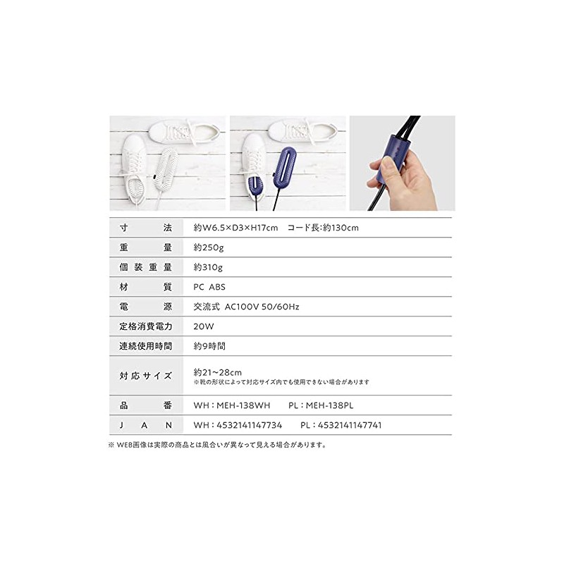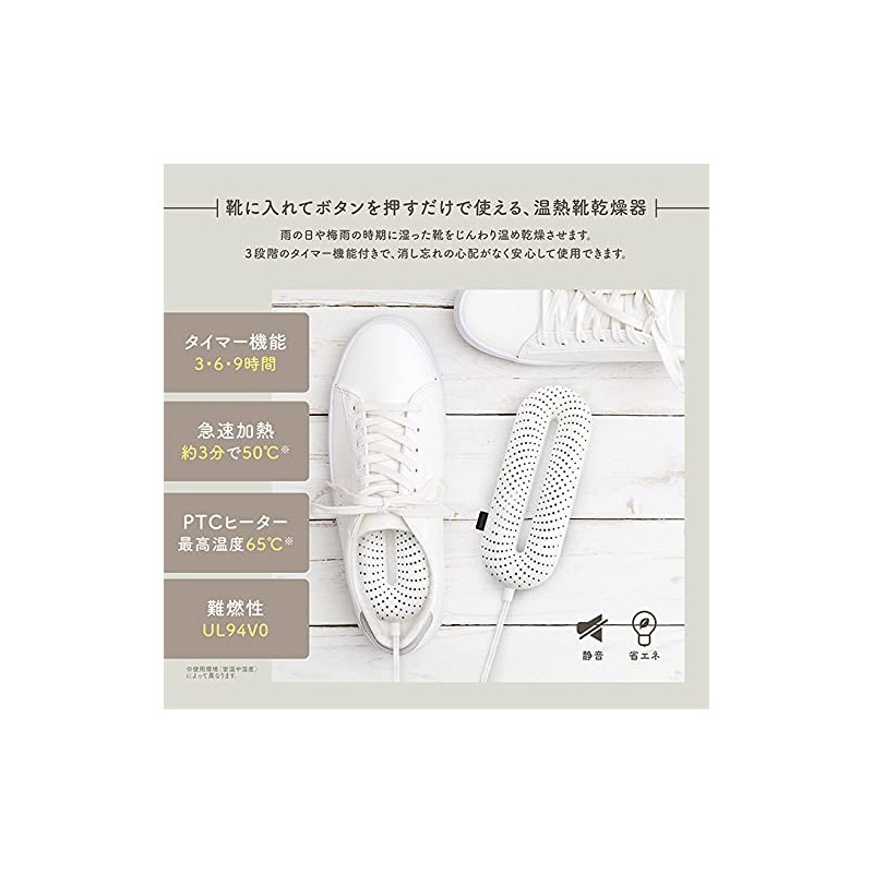 - Equipped with an energy-saving PTC heater. Dry your shoes at a maximum temperature of 65 degrees! Varies depending on usage environment