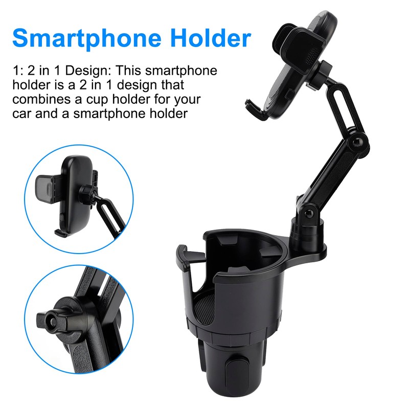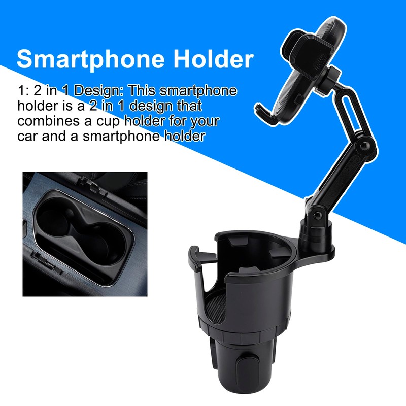 - 【2-in-1 Cup & Phone Holder for Cars】This innovative 2-in-1 car accessory combines a universal phone mount and an adjustable cup holder, letting you securely hold your drink and smartphone in one place. The cup holder base expands from 2.6" to 4.1" (6.6–10.5cm) to fit most car cup holders with ease.