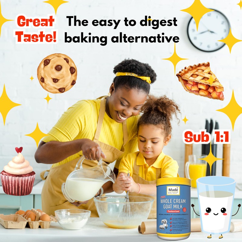 - Gentle on the Stomach: Naturally lower in lactose compared to cow's milk, Made by Nature Goat Milk Powder is often a more easily digestible alternative for individuals with mild lactose sensitivity, allowing you to enjoy the creamy goodness without digestive discomfort.