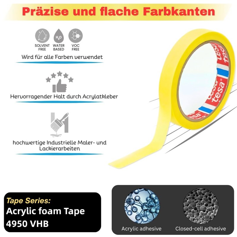 Made from Tesa 4334 Precision Masking Tape Plus Professional Painter Varnish High Quality Masking Tape Contour Tape Residue-free Sharp Edges Masking Cover Tape Yellow (5 mm x 25 m)