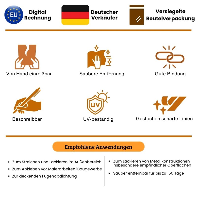 - Suitable for demanding painting work: the crepe masking tape is easy to use and ideal for professional painting work - solvent-free and environmentally friendly