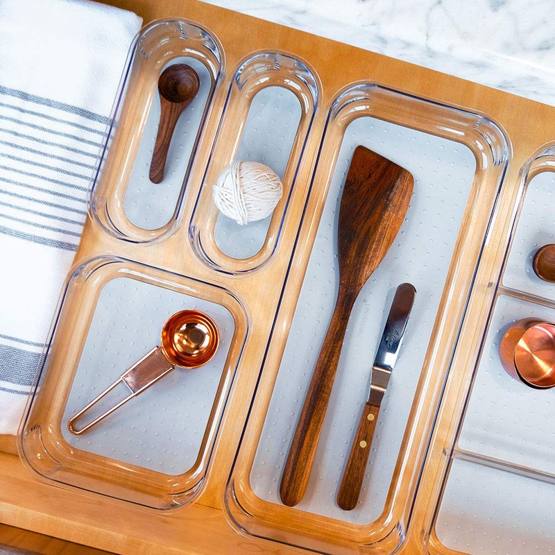 The madesmart Clear Soft-Grip Bin is a modern, all-purpose option for any home organization project. Crystal clear plastic provides visibility while soft- grip lining and non-slip rubber feet keep your items in place and home organized. Rounded corners allow for easy cleaning. Made of high-quality, BPA- free plastic for long-lasting organization.