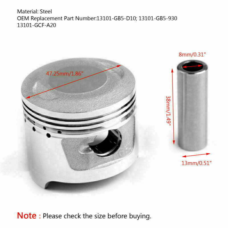 MadHornets 13101-GCF-A20 Bore Size 47.25mm Piston Kit Fits Honda 70CC CRF70F XR70 CT70 EY