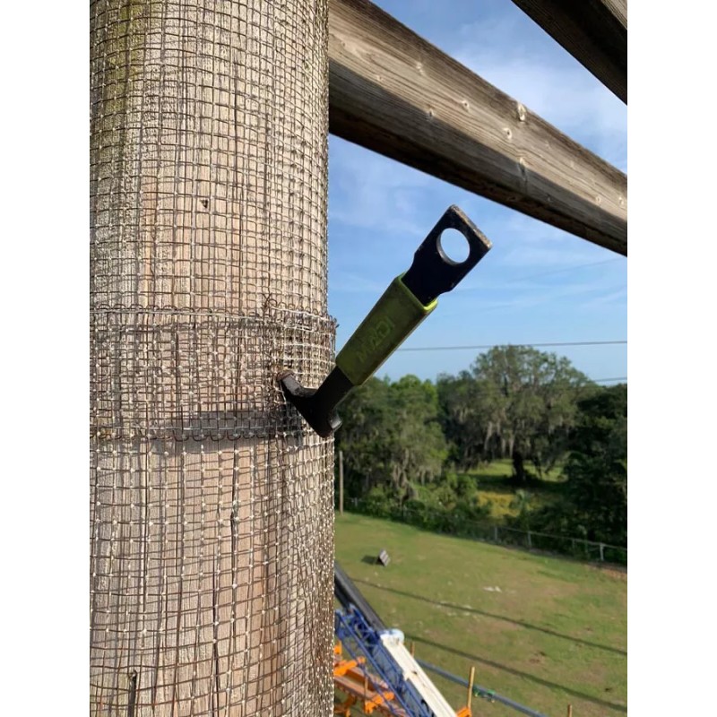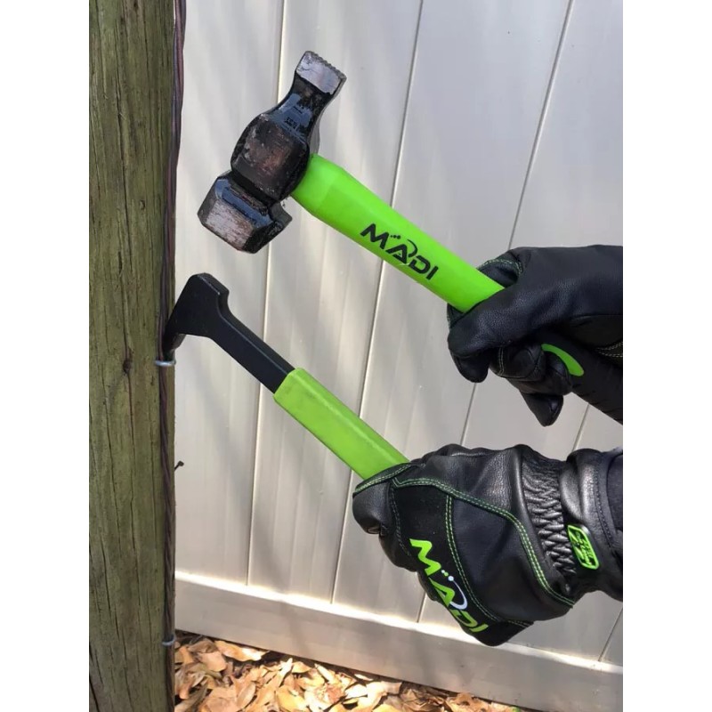 The Madi Lineman Transmission Bell Separator w/ Staple Remover is a unique three in one tool designed to easily wedge and push cotter pins back to separate bells.