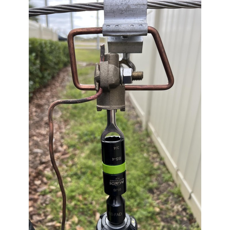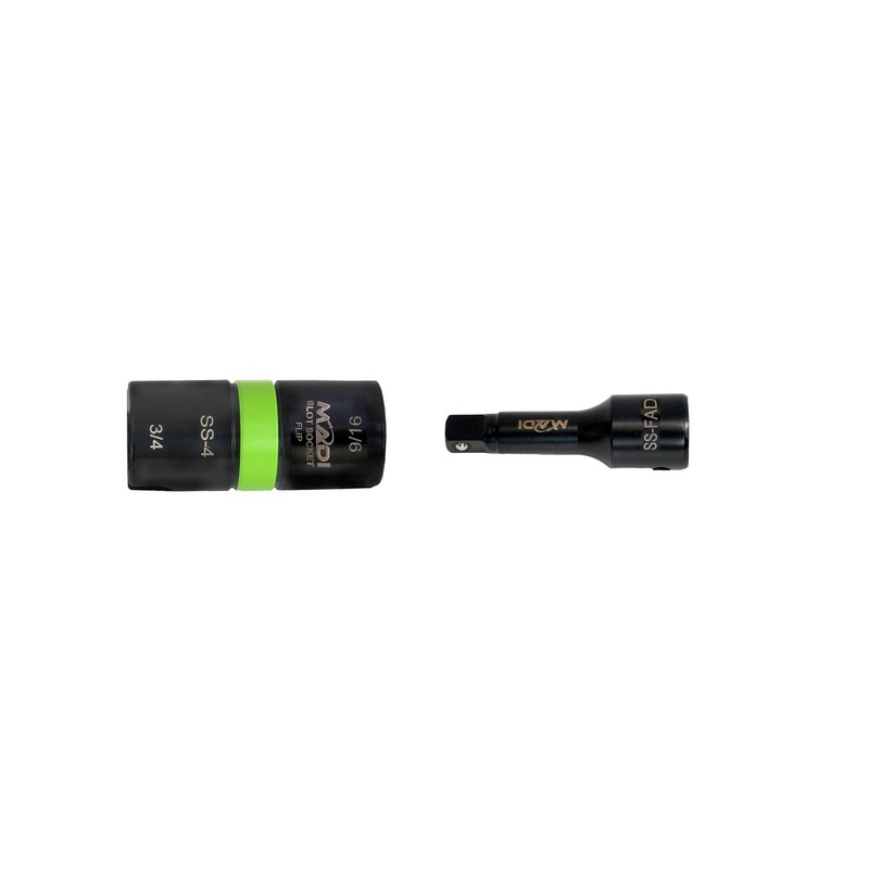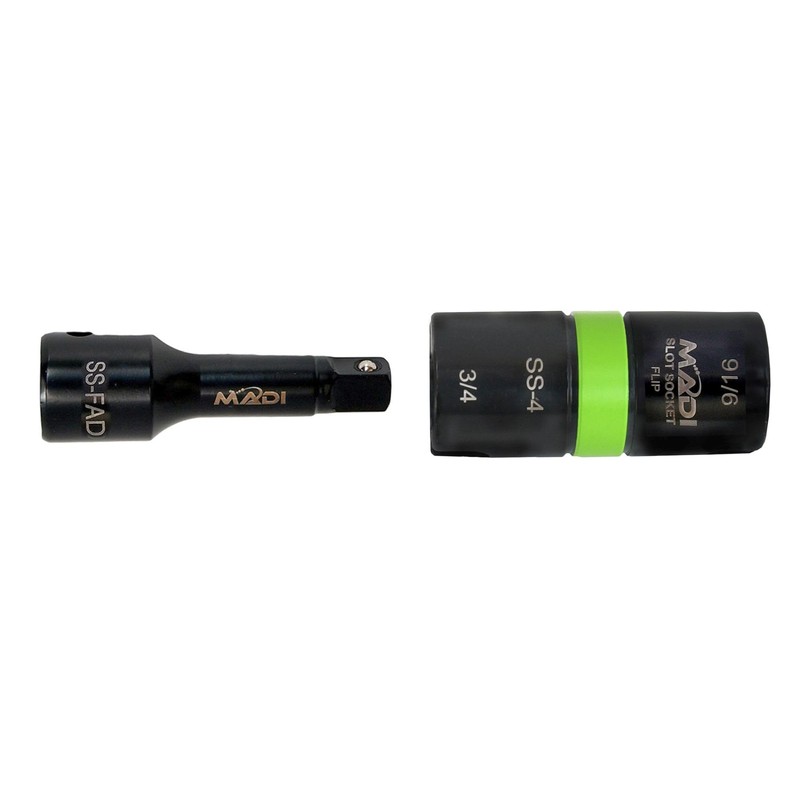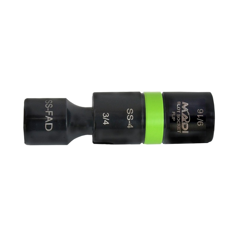 The Madi SS-4 slotted socket is a versatile lineman tool designed to handle multiple fastening tasks with efficiency and durability. It features a flip-style design, allowing users to quickly switch between two essential hex nut sizes 3/4” for transformers, clamps, and other hardware, and 9/16” for copper lugs, grounds, and similar applications. Built for tough conditions, it provides the strength and reliability required for electrical and utility work. The Madi SS-4 impact socket includes a 1/2” female to 3/8” male drive adapter (SS-FAD) and is also compatible with other 3/8” drive adapters, making it an ideal addition to any tool kit. The slotted design on both sides enhances its functionality, making it effective for tightening and loosening grounding clamps, hot line clamps, stirrups, underground feed-through bushings, and temporary arm insulators. By combining multiple functions in a compact form, this lineman socket eliminates the need for additional tools, improving efficiency on the job. Whether used in overhead or underground applications, the Madi SS-4 slotted socket is built to perform.