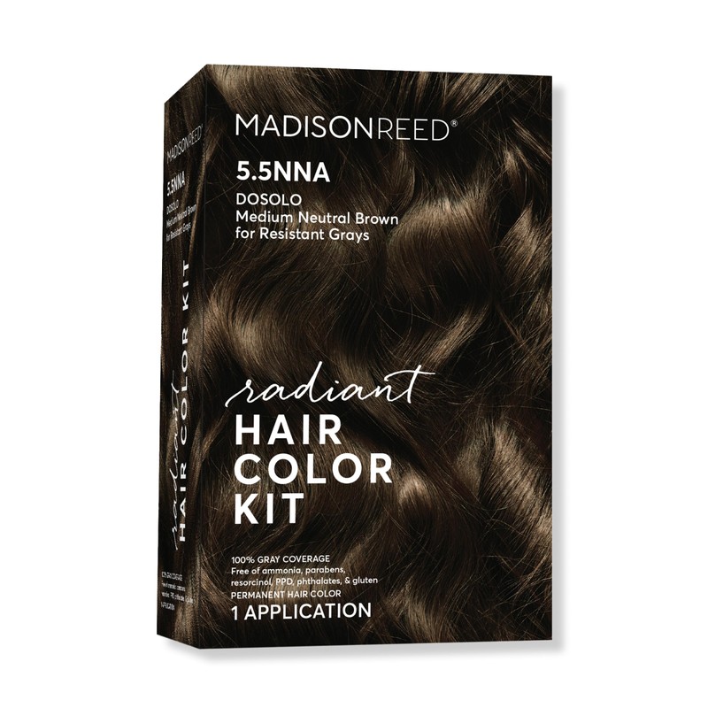 Madison Reed Madison Reed Radiant Hair Color Kit, Medium Neutral Brown for 100% Gray Coverage of Resistant Gray Hair, Ammonia-Free, 5.5NNA Dosolo Brown, Permanent Hair Dye, Pack of 1