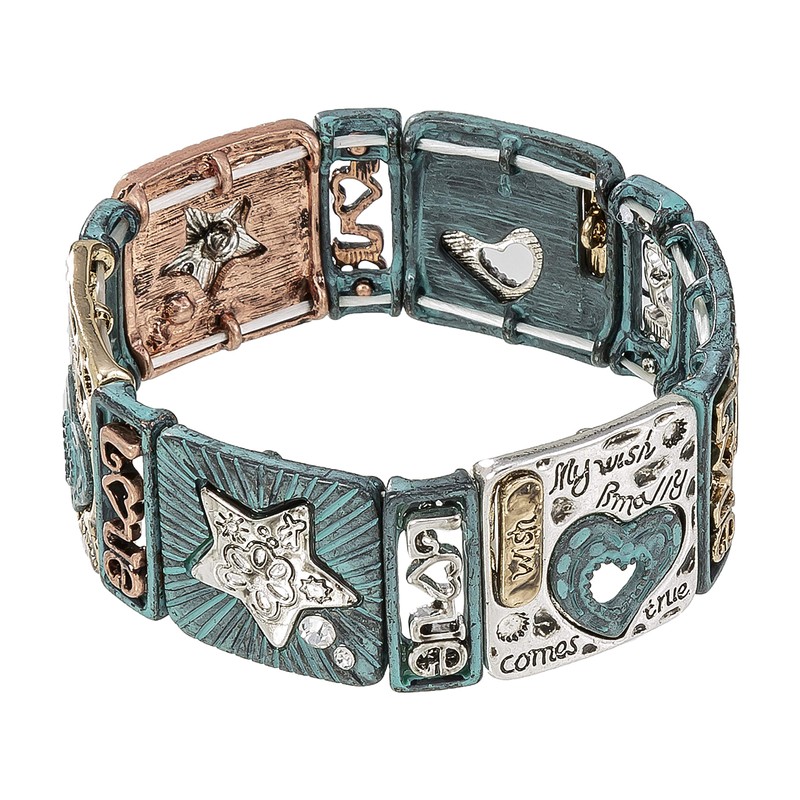 Madison Tyler Religious Prayer Bracelet for Women Religious Jewelry Gift for Girls Christian Gift, Ox Gold Ox Silver Ox Rose Patina Turq Glass Stones,