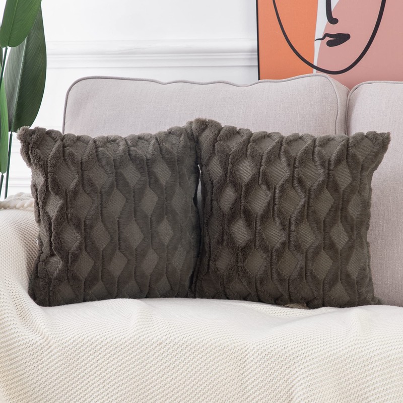 Madizz クッションカバー 2枚セット 柔らかい ぬいぐるみ ショートウール ベルベット 装飾的な 枕カバー 贅沢 スタイル クッションケース ソファ用 寝室用 45*45 cm トープ