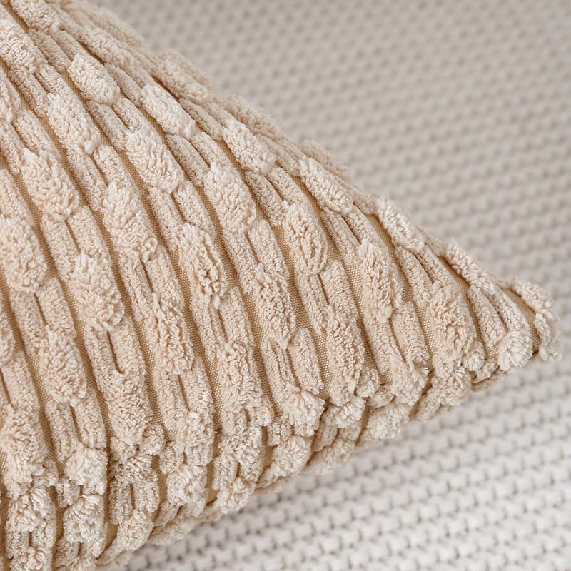 MADIZZ Pack of 2 Boho Striped Corduroy Throw Pillow Covers 16x16 Inch Beige Soft Decorative Cushion Cover for Bedroom Sofa Pillow Shell