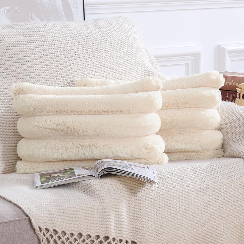 Madizz Set of 2 Plush Velvet Decorative Cushion Covers Fluffy Striped Soft Cushion Cover for Sofa Bedroom Cushion Shell Beige 40 x 60 cm Rectangular
