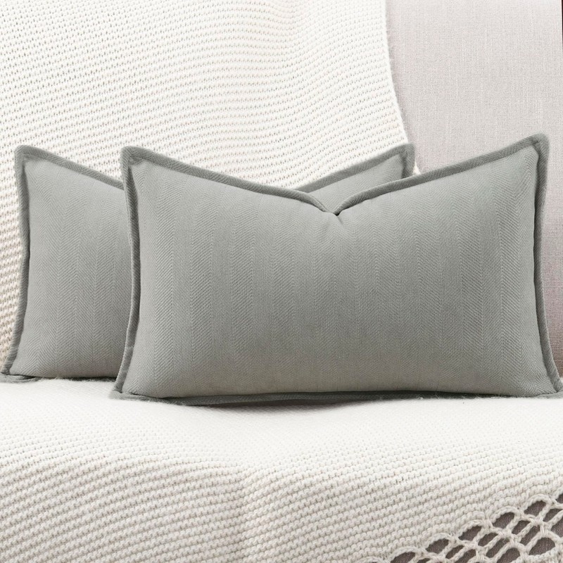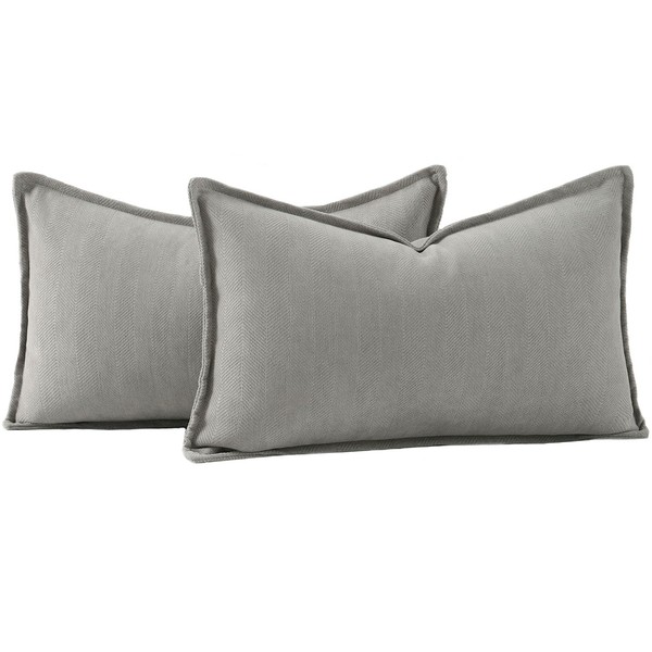 Madizz Set of 2 Simple Chenille Cushion Covers, Soft Decorative Cushion Covers for Sofa, Bedroom, Grey, 40 x 60 cm, Rectangular