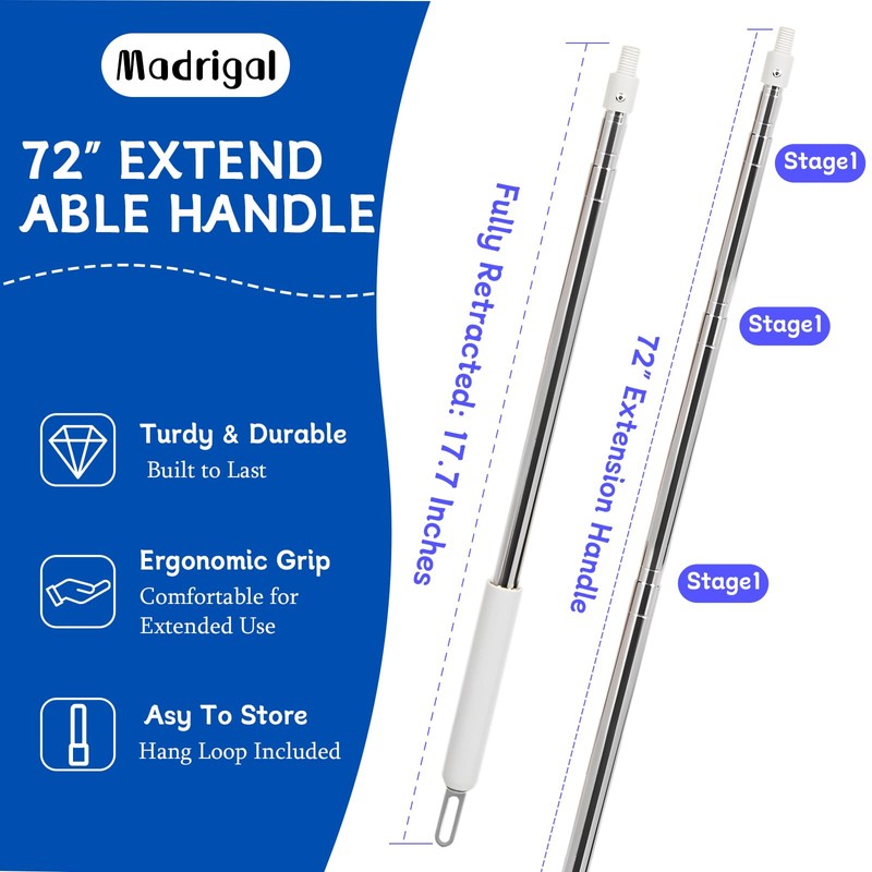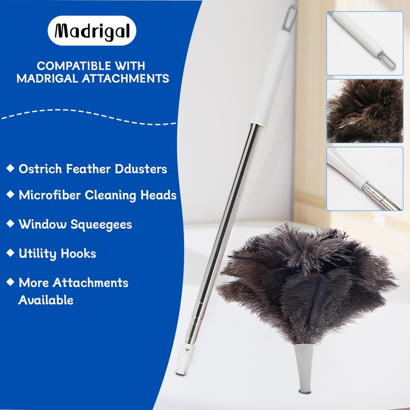 Madrigal 72" Extendable Ostrich Feather Duster for Cleaning with 2 Replacement Heads Washable and Reusable Long Handle Handheld Feather Duster for High Places, Home,Office Cleaning