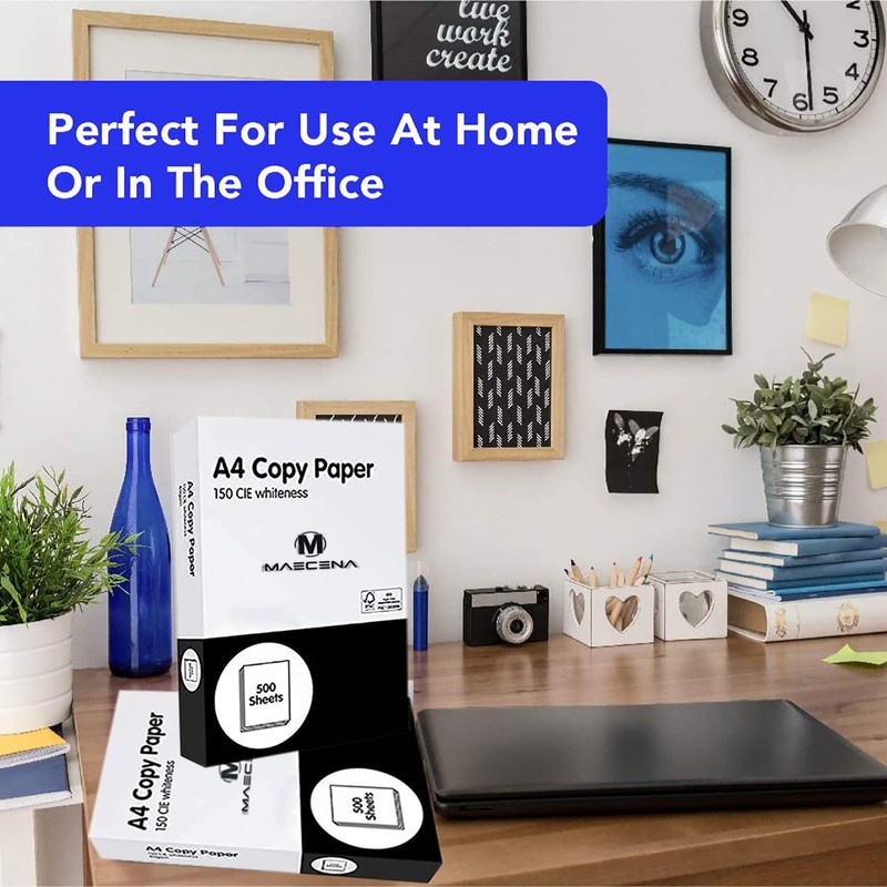 - HIGH QUALITY PRINTING: MAECENA A4 plain bright copier paper is designed to give documents a high-quality look and feel, along with sharper colours and text. This 80 gsm printer paper is suitable for use with all types of laser or inkjet printers and copier machines.