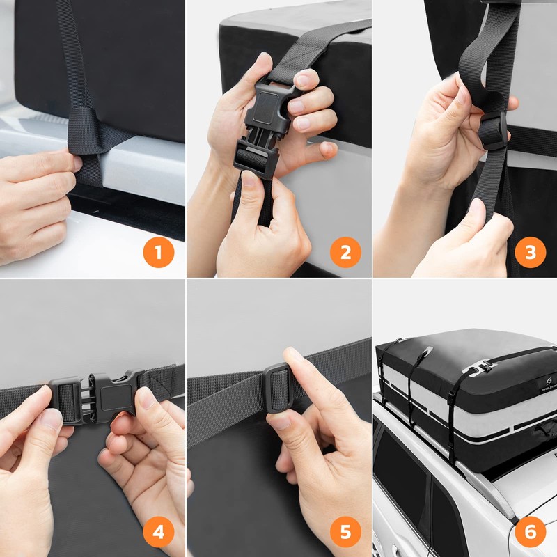 - SAFE and SECURITY: Maelstrom roof bag has 10 perforated fixed buckle straps,which is tear resistant. Its special binding method increases the friction of the straps and fix the rooftop cargo carrier more firmly on the car, so that you don’t worry your luggage bag for car roof will fall off when traveling at high speed. Besides, this roof rack storage bag come with a lock which will not only protect the zippers from slipping, but also keeps the luggage secured.