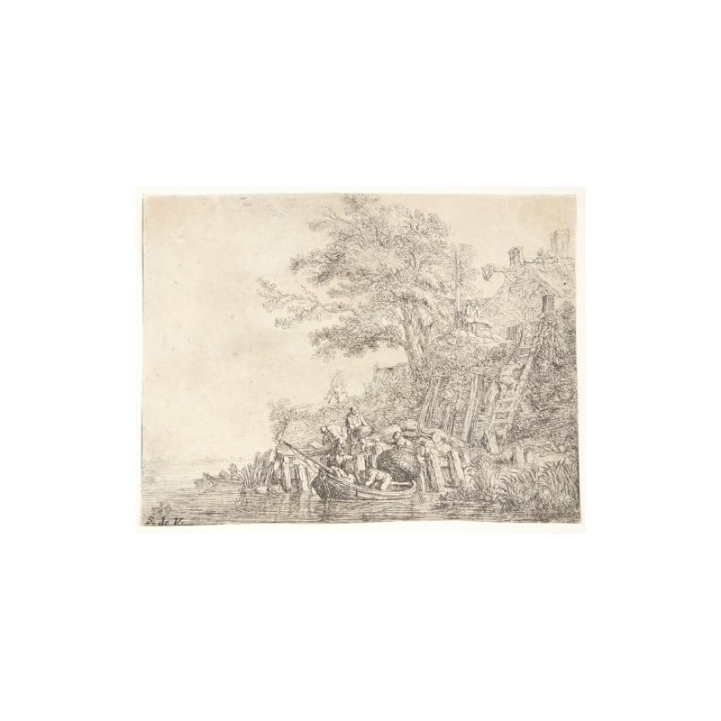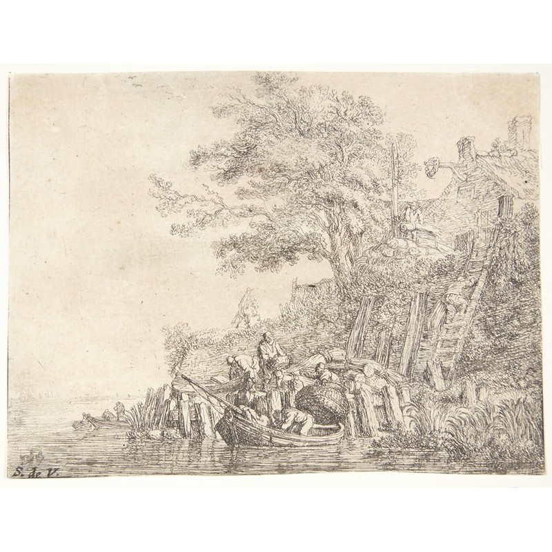 Mænd der laster en båd med korn Poster Print by Simon de Vlieger (24 x 36)