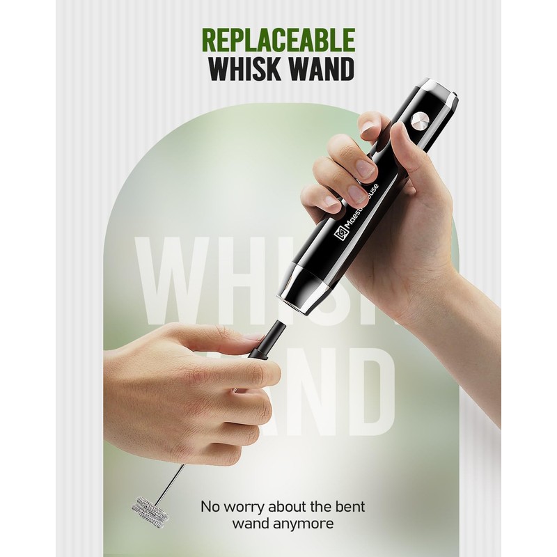 Maestri House Rechargeable Milk Frother, LunaFro NS Handheld Electric Foam Maker Waterproof Detachable Stainless Steel Whisk Drink Mixer Foamer for Lattes, Cappuccino, No Stand