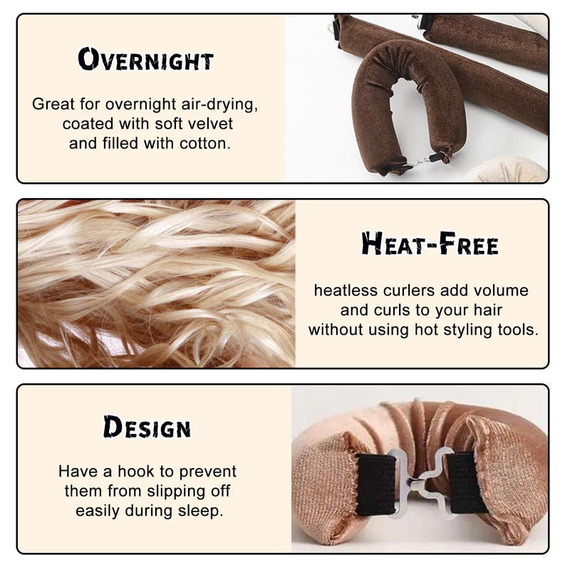 - HEAT FREE CURLLERS: You will receive 3 Heat-Free Curlers. These heat free curlers add volume and curls to your hair without using hot styling tools. No excessive heating required, for smoother and healthier hair.