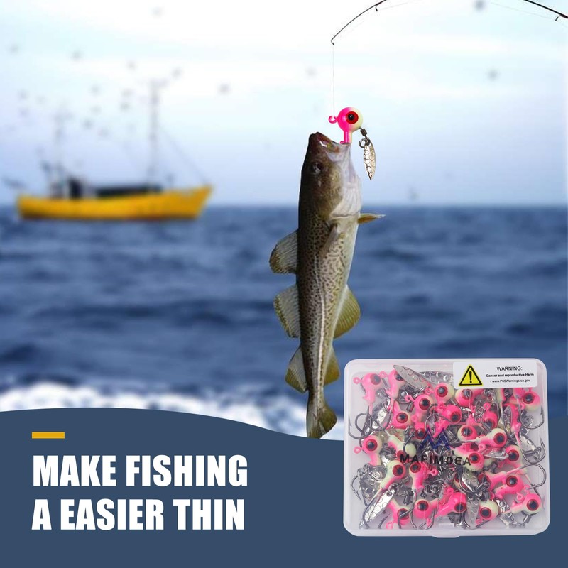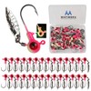 - 【Eye-catching】 Designed with realistic fishhead, our fishing jig heads are easy to attract more fishes . At the same time, our fishing jig heads set have been painted in various bright colors, which can reflect more light energy and enhance the visibility of the jig underwater. There are 3D holographic eyes on the top of jig head hook, which adds realism while creating an illusion of a wider contour.