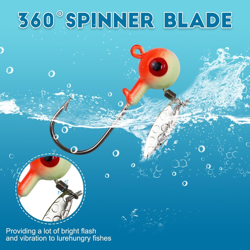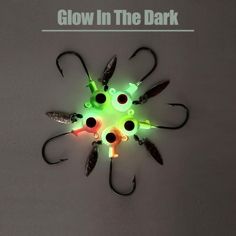 MAFIMOEA 20/30Pcs Underspin Jig Heads with Spinner Fishing Jig Heads Hooks Set Crappie Jigs Fishing Jig Hooks Assortment Saltwater Freshwater Bass Crappie Trout Glow in The Dark