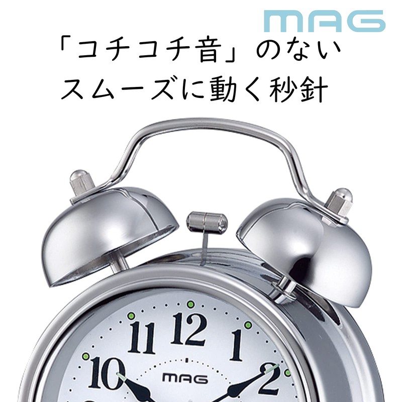 MAG T-765S-Z Bell Mini DX Alarm Clock, Loud Volume, Quiet, Continuous Second Hand, Snooze Function, Light, Silver