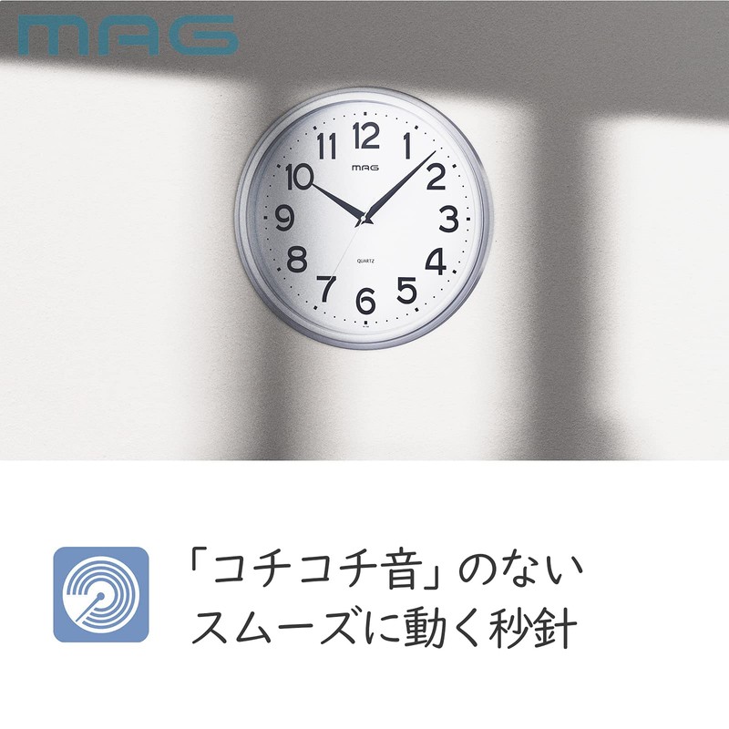 MAG W-759SM-Z Analog Wall Clock, Magmal, Silent, Continuous Second Hand, Silver