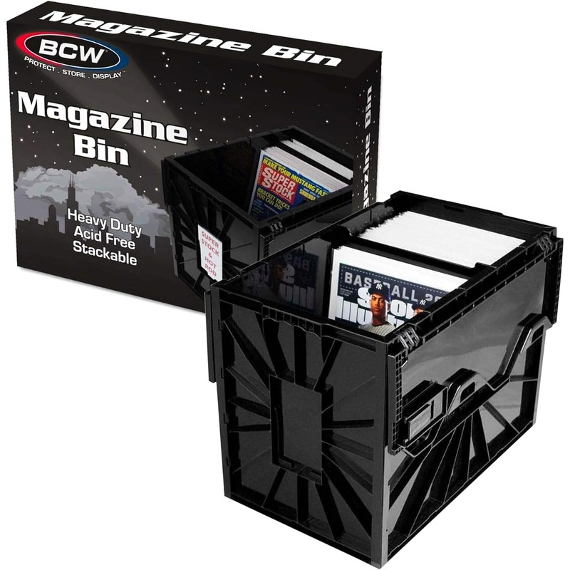 The bin can hold up to 80 magazines or a combination of comic books, documents, and other items, depending on their size and thickness.