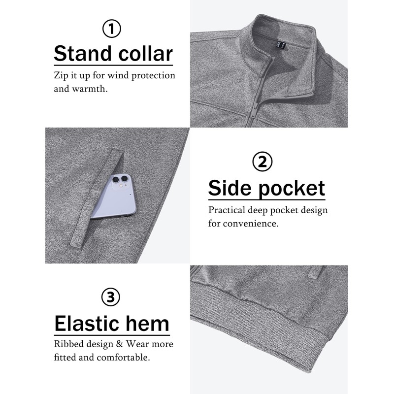 - FULL-ZIP: Full Zip Jackets make it easy to adjust your temperature in daily wear. The zipper can not slip down by itself when fixed on the track.