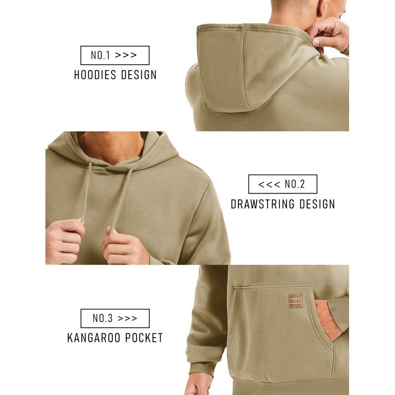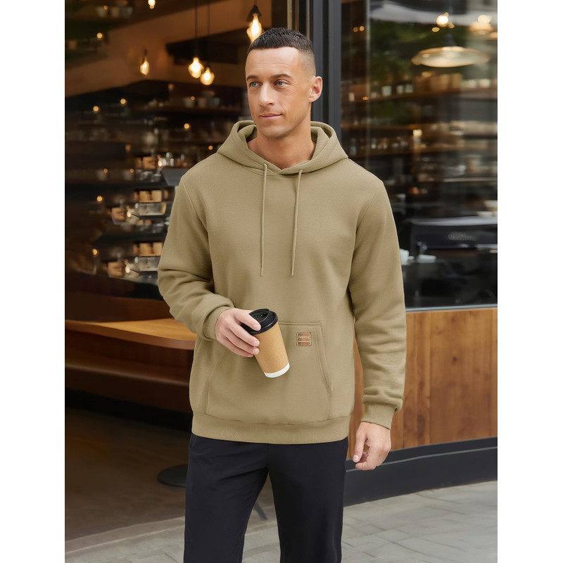 MAGCOMSEN Men's Sweatshirts Fleece Lined Pullover Hoodies Heavyweight Warm Thick Winter Hoodies Athletic Casual Fashion Hoody Khaki L