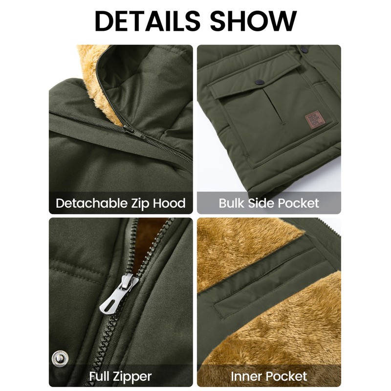 - ๐๐ฒ๐๐ฎ๐ฐ๐ต๐ฎ๐ฏ๐น๐ฒ ๐๐ผ๐ผ๐ฑ: men's parka coat with drawstring and Velcro on the hood, allowing you to withstand the cold and wind. And it could removed worn as a stand-up jacket when the weather gets warmer.