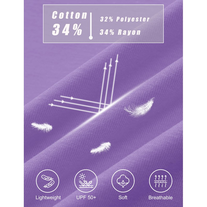 Suitable for summer, UPF 50+ protects the skin and reduces UV damage.